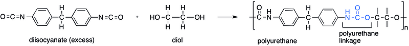由二异氰酸酯和二醇合成聚氨酯。为了修饰该聚合物,可以添加二醇或二胺作为链增长剂,以调整其性能