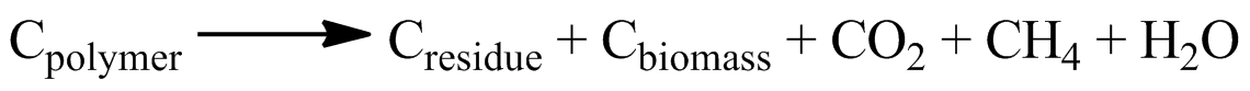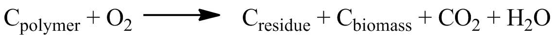 生物降解主要有两种机制。一种是通过水解和光降解等反应进行物理分解,这可以导致部分或完全降解。第二种机制是通过生物过程,生物过程又可进一步分为需氧过程和厌氧过程。前者涉及需氧生物降解,其中氧气的存在至关重要。在这种情况下,如下面的通用方程式所示,其中 C残基代表初始聚合物的较小片段,例如低聚物。