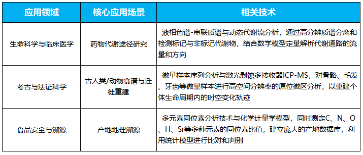稳定同位素技术通过检测元素原子核中中子数的自然差异,已成为众多领域不可或缺的分析工具下表概括了主要应用领域与相关技术:
