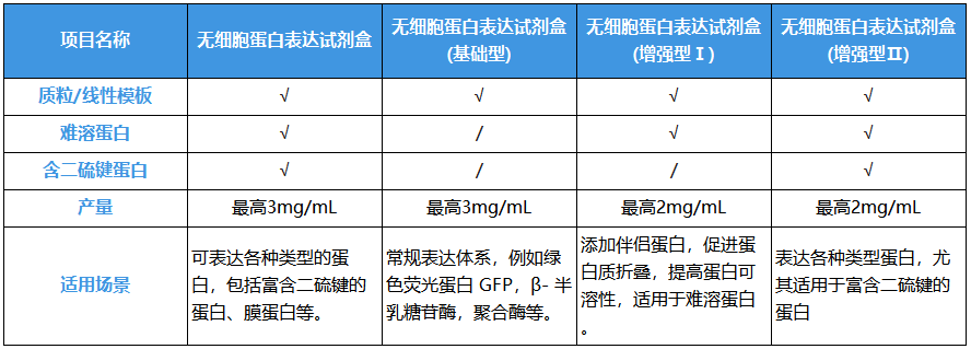 | C668375 | 无细胞蛋白表达试剂盒(增强型Ⅰ) | 适用于难溶蛋白 | 20T/100T |