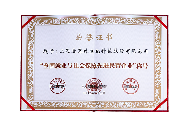 会议为受到表彰的上海民营企业代表及个人举行颁奖,上海麦克林生化科技股份有限公司获评“全国就业与社会保障先进民营企业”。